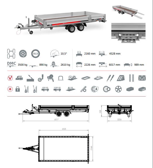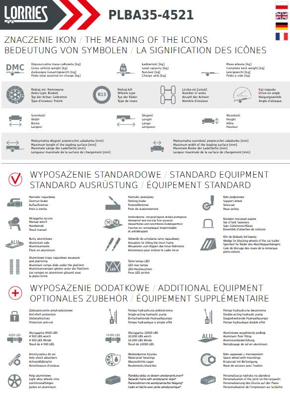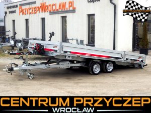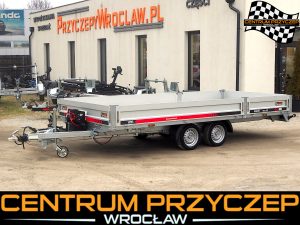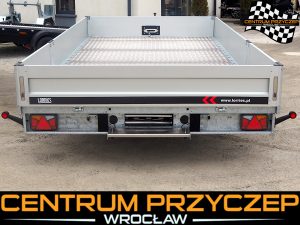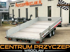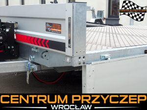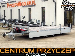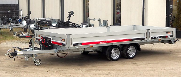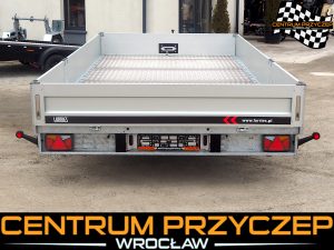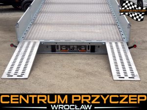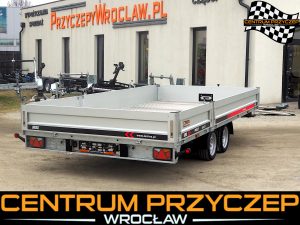 Przyczepa laweta z burtami aluminiowymi umożliwia przewóz różnych pojazdów, np. samochodów wyścigowych, quadów czy maszyn budowlanych. Posiada DMC 3500 kg. Wyposażona jest w 2 osie hamowane.